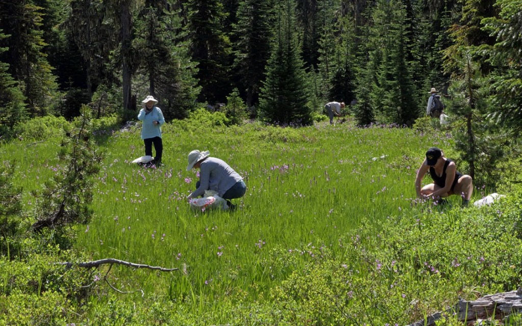 Recolección de semillas nativas durante un muestreo botánico en la Cordillera Central